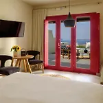 L'hotel Potnia Theron Suites offre des chambres avec un patio et un coin salon comprenant une climatisation, ainsi qu'une TV à écran plat avec des chaînes satellite. Elles sont équipées d'un coffre personnel, d'une cafetière/théière et des fenêtres insonorisées, et ont aussi un réfrigérateur et de la verrerie. Les salles de bain sont dotées d'une toilette séparée et une douche et le confort est assuré par un sèche-cheveux et un bonnet de douche.